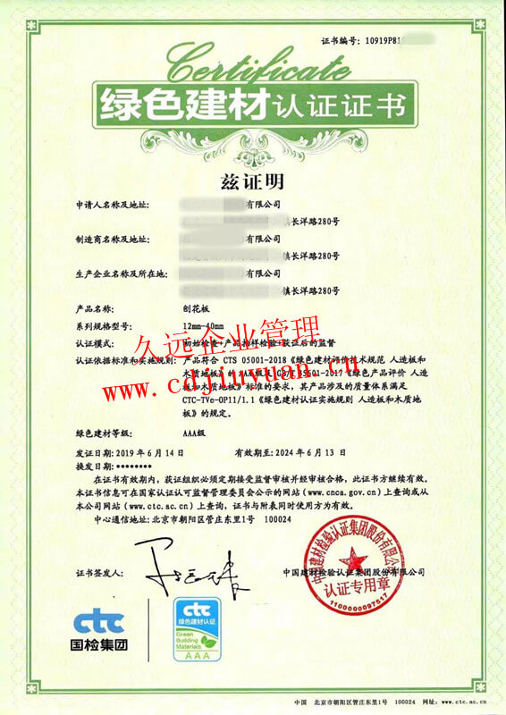 綠色產品認證證書